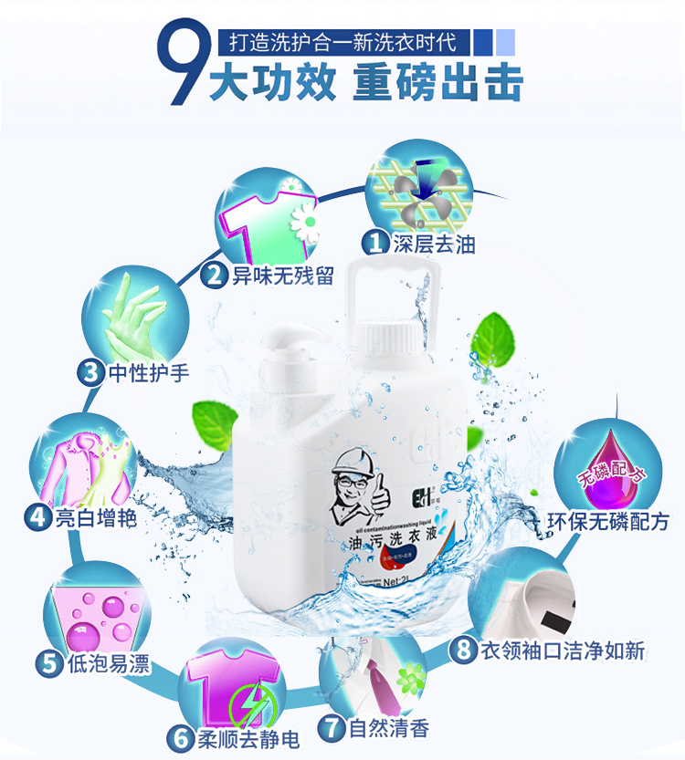 尔哈去油污洗衣液----工业工作服、家庭衣物重垢、干洗店油深层去污渍